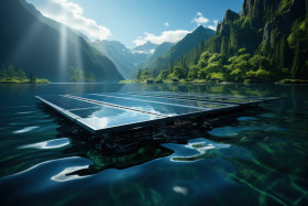 photovoltaic green nature clean sunlight solar powered environmental aquatic sustainability technology innovation harvesting sun water panels renewable eco energy floating harnessing power friendly futurism hyperrealistic hdImagine Buddy