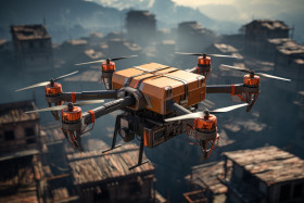 futuristic skyline logistics drone unmanned delivery efficiency urban progress future aerial technology packages cityscape vehicles innovation landscape transportation city speed modern automated futurism hyperrealistic hdImagine Buddy