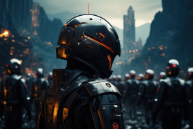 Advanced protection robotic police defending the futuristic city