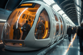 Journey beyond earth boarding spaceships at futuristic spaceport