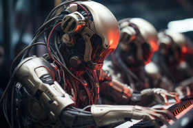 garde automation concert instruments harmony intelligence performance orchestra avant innovation music digital musical robotic musicians ensemble humanoid artificial automated robots future electronic technology futuristic creativity mechanical instruments futurism hyperrealistic hdImagine Buddy