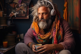 hands yarn lit art comfort skill scarf relaxation peaceful relaxation homemade craft hobby cozy handmade creative leisure room handmade hot man textile crafting knitting well creative handmade tea cup warm serene artistic cozy colorful hyperrealistic hdImagine Buddy