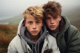 Boys wrapped in warm jackets relish the serene ambiance, hygge c