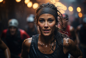 runners racing rain determination glistening raindrops splashing water resilience athletes wet triumph rainy resolve athletic spirit running in the rain weather challenges liquid determination challenging conditions wet race unyielding grit rain soaked athletic perseverance weather resilience competitive spirit sportsmanship raindrops resilience runner race race banner hyperrealistic hdImagine Buddy
