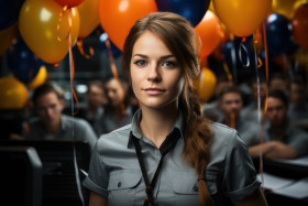 colorful office jubilation hyperrealistic corporate accomplishment day party hd festooned pride gala celebration cheering teamwork event atmosphere ceremony happiness decorations employee recognition festivity joy success proud employees awards achievement appreciation workplace medals triumph team festive balloons corporate eventImagine Buddy