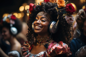 traditions hyperrealistic costumes party silent grooving festive dance revelers tradition music extravaganza italy dancing vibrant experience carnival venetian festivity fun spectacular festival headphones energetic disco cultural unique celebration colorful atmosphere hd wireless immersive entertainment joyfulImagine Buddy