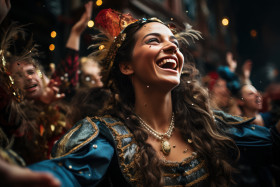 Moment confetti fills the air at venetian carnival, colorful carnival images