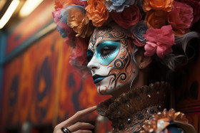 Street mural echoing venetian carnival tradition, festive carnival photos