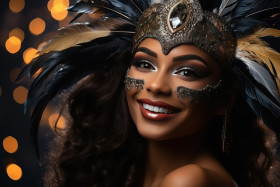 Feathered elegance woman shines in glittering carnival mask, carnival festival pictures