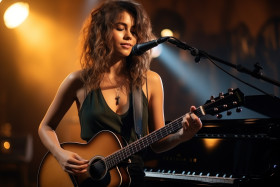 creativity performance expression live performing empowerment confidence talent singer guitarist concert equality music strength determination female arts hd presence pianist gender performer artistic woman musician passion hyperrealistic stage musical feminism vocalistImagine Buddy