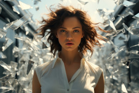 feminism barrier woman success determination workplace perseverance empowerment equality gender ambition progress hd overcoming obstacles leadership advancement professional achievement female ceiling career breakthrough hyperrealistic glassImagine Buddy