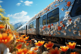 covered hd expedition scenic railway journey transportation railway adventure railway panoramic nature breathtaking serenity journey carriages travel experience scenic route trek locomotive adventure stunning outdoor travel landscape natural beauty picturesque spring train vistas travel hyperrealistic countrysideImagine Buddy