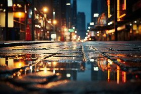Urban cityscapes reflected in rain puddles, environmental images