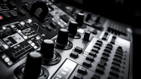 A detail of a machines control panel the panel is in black and white and the image has a high-contrast look, industrial machinery stock images ai, midjourney prompt ideas