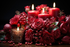 Red roses illuminated by gentle candlelight, engagement, wedding and anniversary image