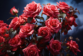 A mesmerizing scene of red roses defying gravity amidst heavenly clouds, valentine, dating and love proposal image