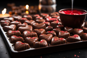 Pouring devotion into crafting heart shaped chocolates, valentine, dating and love proposal image