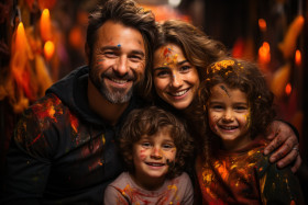 Indian family embracing colorful celebrations, holi festival images hd