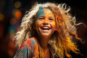 Happy young girl engaged in colorful powder celebration, holi festival images hd