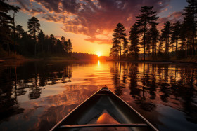 serene environment sunset ambiance tranquil waters lake serene sunset hyperrealistic scenic reflective moments tranquil lake scenery tranquil sunset canoeing adventure evening dusk scenery peaceful sunset glow twilight scenic beauty hd serene moment canoeing nature sunset outdoors landscape dusk paddle reflectiveImagine Buddy