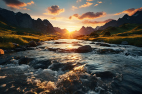 Embrace mountain lake absorbing sunset glow, beautiful sunrise image