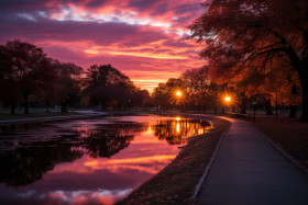 colorful sunset wallpaper scenic serene landscape environment twilight canopy pond reflections picturesque urban park sunset serenity serene sunset colorful reflections landscape city park hd pond sunset ambiance twilight nature reflections colorful sky dusk evening glow park scenery scenic beauty hyperrealistic serene sunset outdoorsImagine Buddy