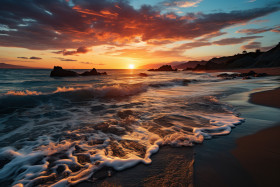 Elevated dawn sun ascent over the open sea, beautiful sunrise image