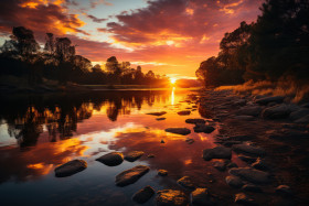 Evening palette sun setting over the water, beautiful sunrise image