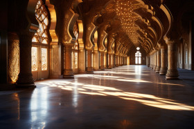 sacred islamic serene travel moon majestic spiritual serenity dawn beauty cultural rays ornate eid tourism golden morning heritage place of worship sunrise hyperrealistic tranquil peaceful islamic art archways sunlight crescent mosque architecture muslim historical grandeur landmark ramadan islamic architecture arches hd cultural heritage festival design religiousImagine Buddy