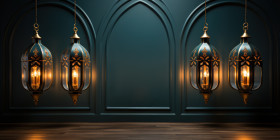 lanterns gold blue background illumination light muslim ramadan eid crescent moon mosque festival hyperrealistic hd decoration decorative captivating ornamental elegance serene serenity magical radiant ambiance night scene lanterns luminosity cultural artistic enchanting night lantern lights beauty vibrant tranquility celebration color atmospheric stylish tranquil traditional glowing lanterns glowing decor festive contrast atmospheric lighting compositionImagine Buddy