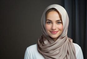 hijab muslim woman professional smiling ramadan eid crescent moon mosque festival hyperrealistic hd cheerful ethnicity radiant success headshot white background workplace joy fashion career contemporary hijabi diversity business confidence genuine identity empowerment expression lifestyle positivity studio confident modern portrait muslimah cultural corporate islamic hijab young adult islamic fashion authentic happinessImagine Buddy