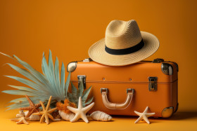 yellow suitcase palm leaves starfish yellow background tropical getaway vibrant colors beach adventure suitcase decoration beach chic suitcase with palm leaves beach vacation yellow suitcase tropical delight tropical chic tropical vibes travel essentials suitcase and starfish suitcase and palm sunny escape vacation style travel in style yellow aesthetics beachy vibes sunny background sunshine chic tropical adventure travel concept vibrant yellow tropical escape palm leaves and starfish tropical suitcase sunshine yellowImagine Buddy