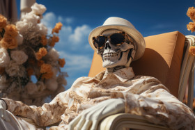 skeletal sunbather sunglasses seaside skele chill beach pool chair afterlife vibes chill in the afterlife poolside unwind beachside scene skeleton chill zone sunny skeleton sun soaked bones skeleton summer skeleton aesthetics beachside chill skeletal sunbathing poolside relaxation bone dry beach blissImagine Buddy