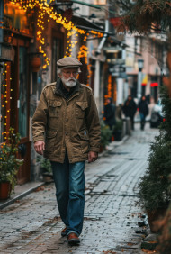 senior man elderly town street walking urban jacket jeans senior lifestyle male man hyperrealistic hd city city exploration casual attire cityscape leisurely walk elegant walk downtown city streets exploration experienced relaxed metropolitan town scene casual trendy leisure sidewalk fashion strolling mature comfortable city lifestyle senior man urban environment stylish casual fashionImagine Buddy