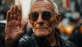 senior elderly man sunglasses greeting wave senior lifestyle male hyperrealistic hd summertime positive retirement shades leisure retired portrait fashion smiling communication cheerful expression casual gesture outdoors joyful grandpa cool stylish charismatic friendly relaxed aged approachable confident happiness hello mature raising hand matured old salutationImagine Buddy