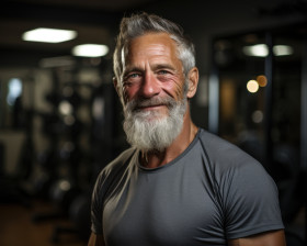 Elderly man in his gym, active seniors lifestyle images