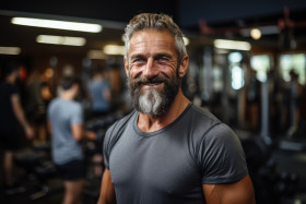 Elderly gentleman embraces gym, active seniors lifestyle images