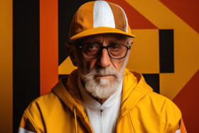 Senior gentleman in casual shirt and cap, diverse active seniors pictures