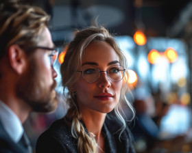 A candid moment of two coworkers discussing important matters, business meeting photo