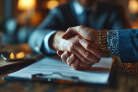 Business partners finalize a significant deal on paper, business meeting photo
