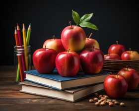education school learning book apple pencils blackboard teacher student education study teacher day college hyperrealistic hd literacy knowledge enhancement study tools educational resources background teaching colorful classroom reading stationary back to school white study materials literacy materials academic red writing elementary academic tools textbook knowledge suppliesImagine Buddy