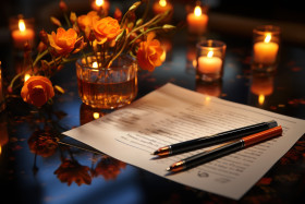 An open document with a pencil and marker on a desk, education pictures for website