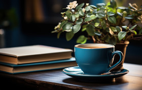 coffee cup desk books plant coffee drink beverage caffeine hyperrealistic hd arrangement knowledge decor hot drink study time aroma relaxation peaceful learning home indoor plants literature cozy leisure wooden workspace morning lifestyle education cozy corner mug serene calm reading workspace setup greenery office tabletop studyImagine Buddy