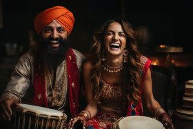 man woman people traditional dress drums dancer lohri makar nature agriculture wheat festival hindu india makar sankranti hyperrealistic hd woman folk traditional instruments festive joyful traditional music entertainment performance cultural diversity cultural performance traditional man celebration cultural celebration music cultural ethnic cultural heritage routine cultural tradition traditional clothing attire dance cultural eventImagine Buddy