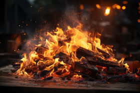 Fiery bonfire blazing brightly in the dark night illuminating the surroundings with its warm glow and dancing flames, lhori, makar sankranti