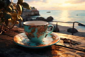 coffee cup table lake serene tranquil peaceful drink relaxation nature outdoors coffee cup beverage caffeine hyperrealistic hd water edge calm view shoreline dawn horizon morning mistiness coffee cup mist leisure refreshment idyllic scenic view misty quiet still life scenery landscape reflectionImagine Buddy