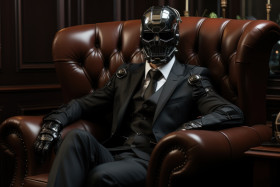 robot sitting black leather couch technology futuristic robotic technology hyperrealistic hd robotics innovation interior design robotic living room relaxation stylish automation artificial intelligence electronic home chill couch lounge machine concept modernImagine Buddy