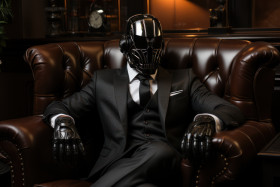 robot sitting black leather couch relaxation modern technology robotic technology hyperrealistic hd lounge mechanical home interior futuristic innovation machine comfortable automation sofa lifestyle leisure robotic ai robotic companion concept smart artificial intelligence design electronicImagine Buddy