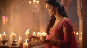 Woman dressed in sari and holding diwali wick, diwali festival stock image, diwali festival ai prompt