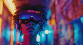 Innovative tech company woman collaborates with cutting edge technology for modern solutions and advancements